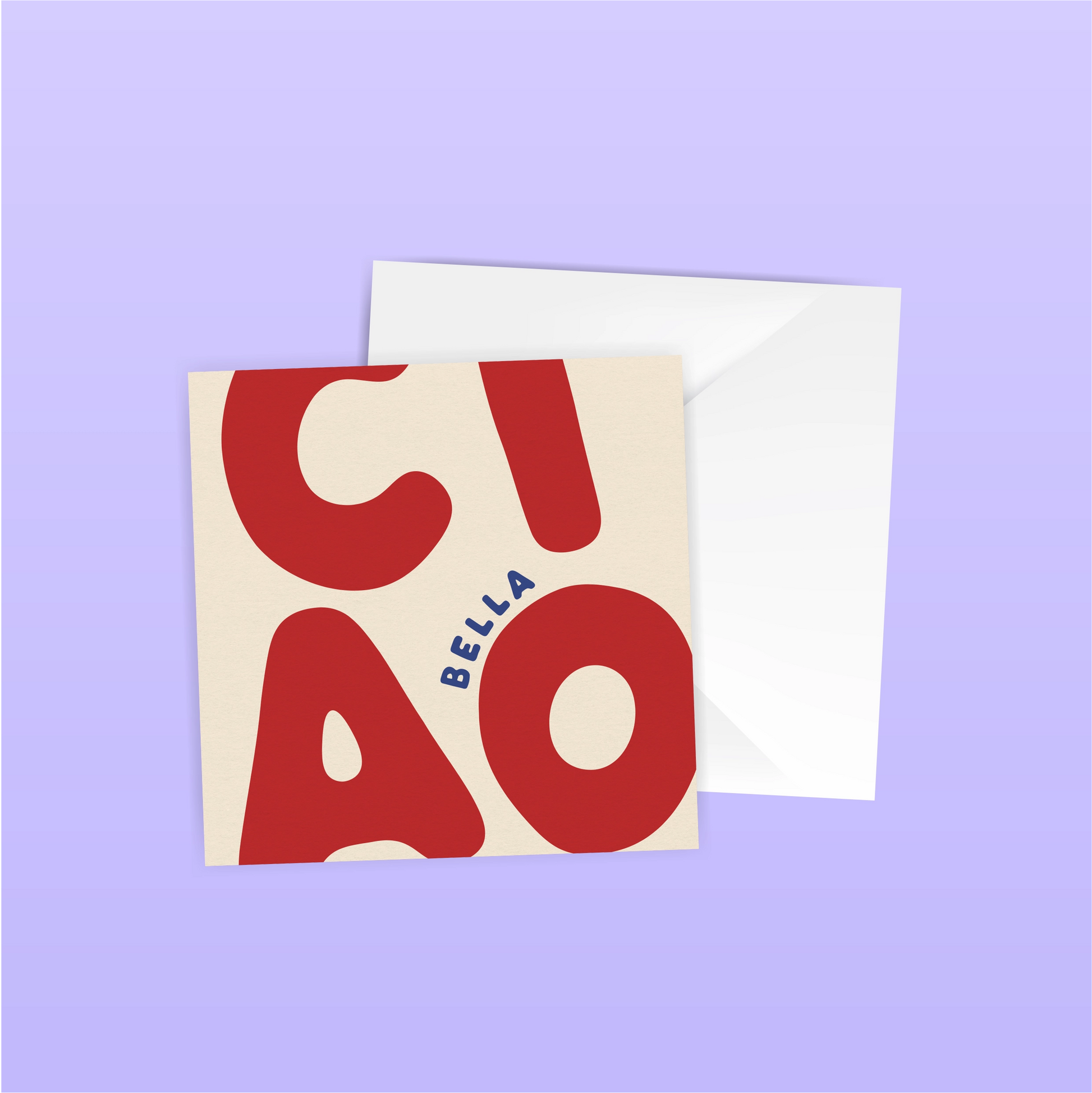 Big Italian energy in a bite-sized square. Say hi, bye, or flirt just a little without even opening the card.