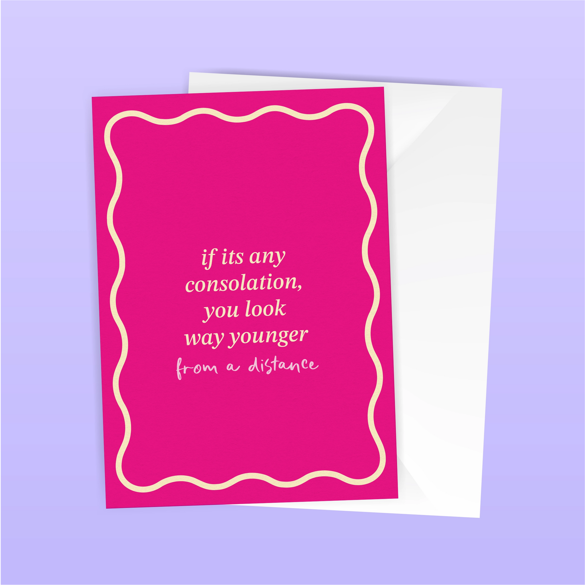 If it's any consolation, you *do* look younger… just not up close. A cheeky age roast, perfect for a bestie.