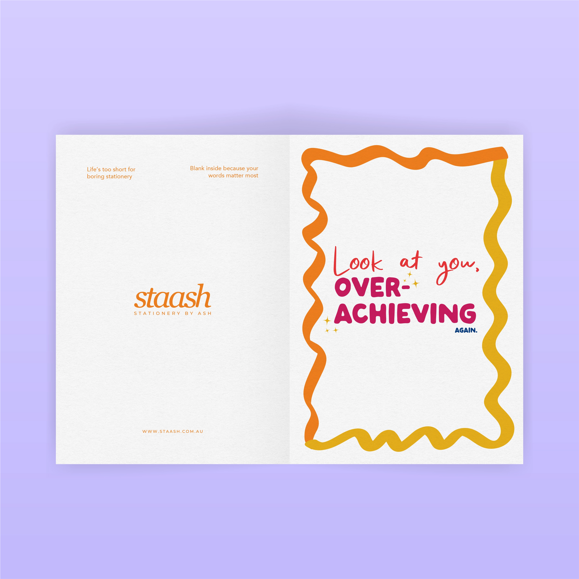 Look at you, overachieving again. Some people just can’t help themselves, and thank goodness for that. This little legend of a card is here to help you celebrate the show-offs in your life, with a wink.