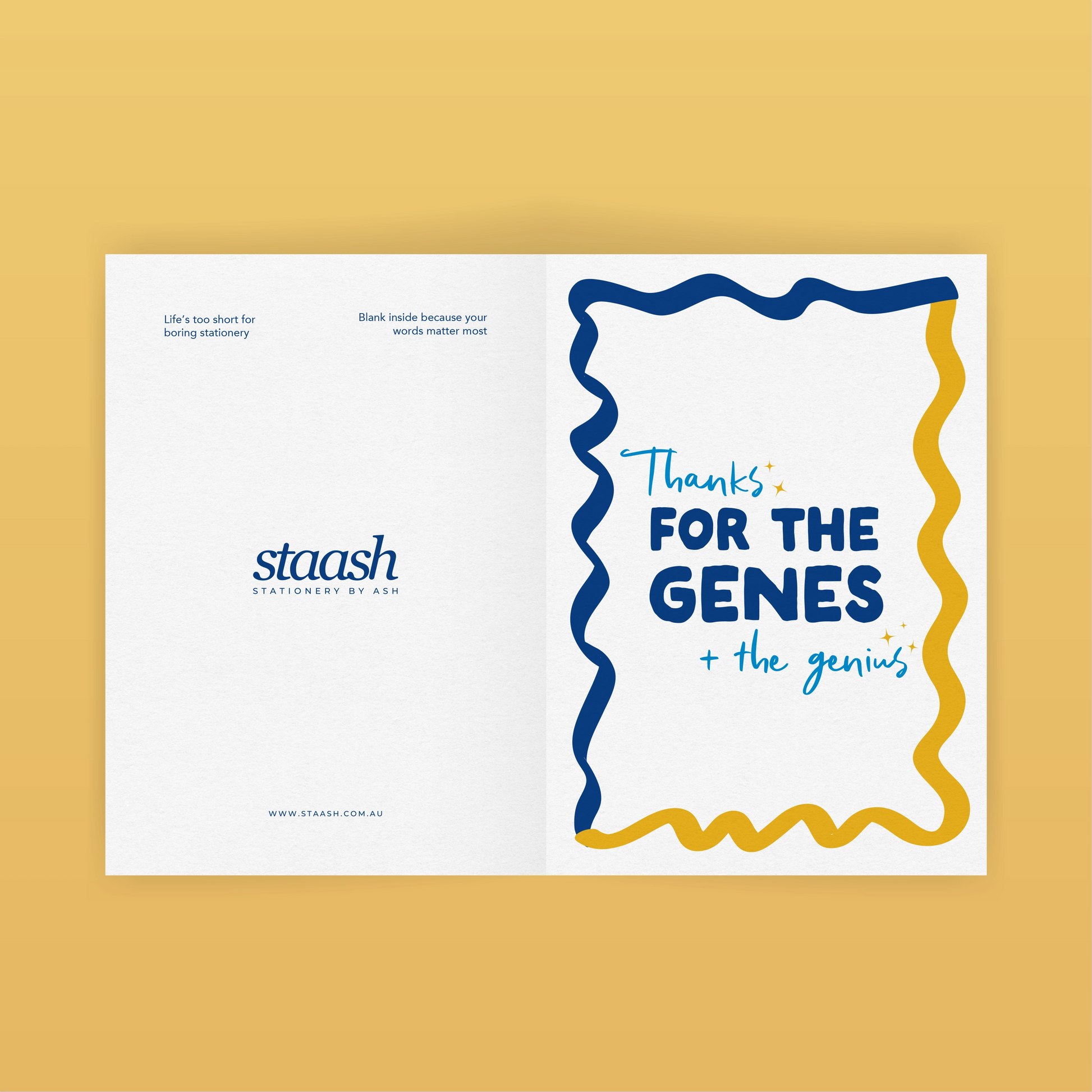 For the legends who gave you your freckles, your dodgy knees, and (thankfully) your charm. A cheeky salute to mum, dad, or your DNA MVP. The ones who made you half good looks, half chaos, all genius. Perfect for: Mother’s Day, Father’s Day, birthdays or any moment of family gratitude served with a wink.